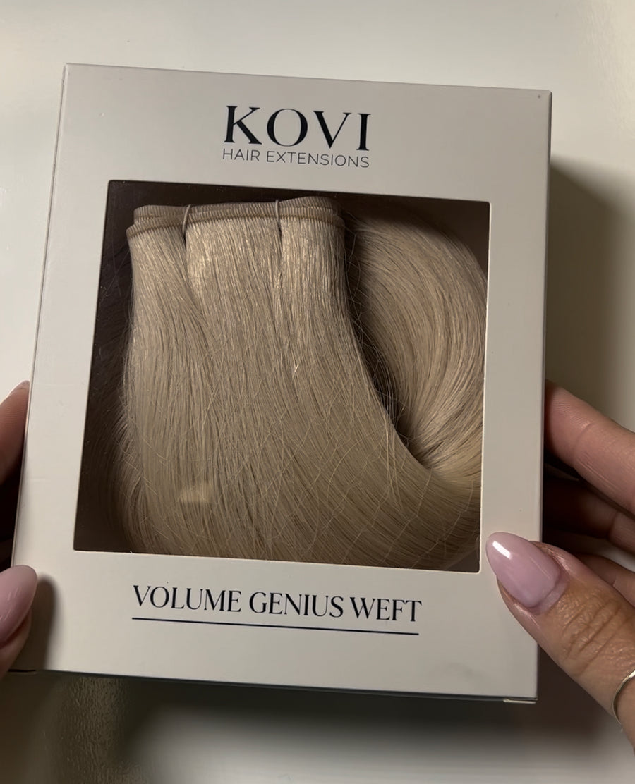 Introducing the KOVI Volume Genius Weft™, a patented technology that revolutionizes the world of hair extensions! We’re the first in the world to create this one-of-a-kind weft, designed for maximum volume and ease of use. Combining two extra-thick layers of Genius Wefts into one seamless weft, this innovative weft delivers unmatched fullness while laying perfectly flat for a comfortable, natural feel.