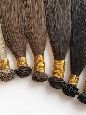 ** Hand-Tied Wefts cannot be cut at the weft: Wefts can be easily folded to fit desired widths. Due to the nature of how the wefts are made, hand tied hair should never be cut along the wefting.