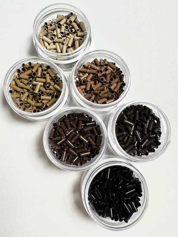 Our Copper Microtubes are specifically designed for I-tip hair extensions, providing a firm and reliable hold. With a smooth interior and no silicone lining, these copper beads ensure a tight grip on the extensions while being gentle on the natural hair. They’re the go-to choice for seamless and discreet I-tip installations.