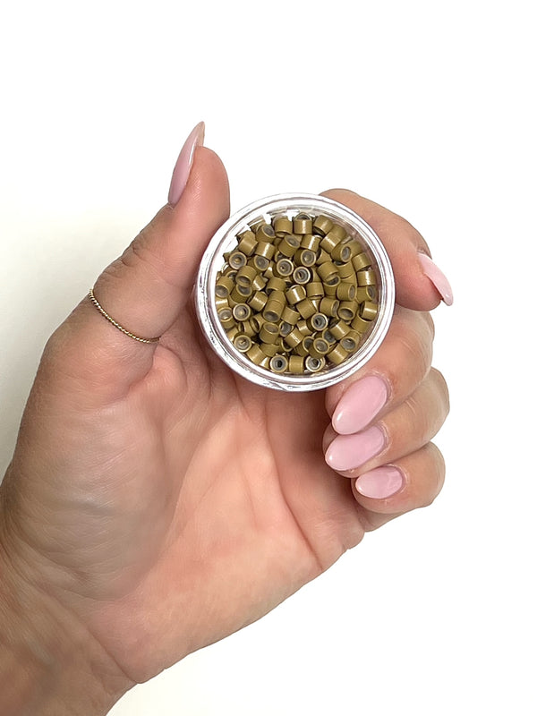 Our Silicone Lined Microlinks are expertly designed to provide a secure and seamless hold for your hair extension weft installations. Unlike most beads, KOVI Microlinks feature a color-matched silicone lining that perfectly blends with your client’s natural hair, ensuring flawless, invisible installs every time.